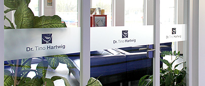 Zahnarztpraxis Hartwig · Praxis Zeil am Main · Wartezimmer · Glasdekorfolien + Systemtextfolien