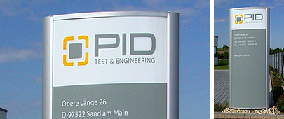 Unser Kunde PID inszeniert seinen Eingangsbereich perfekt - dank unserer beleuchteten Pylonen. Mit einer Höhe von 3 Metern und einer Breite von 1,25 Metern hebt der beidseitig beschriftete Werbepylon den Eingang hervor. Apropos beleuchtet: Wir arbeiten schon lange mit ortsansässigen Handwerkern zusammen und unterstützen so das lokale Gewerbe. Bei diesem Projekt unterstützte uns ein Elektriker bei der Installation.