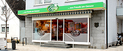 Metzgerei Espig · Filiale Gundelsheim · Schilder im Digitaldruck · Glasdekorfolie (Logo negativ geplottet)