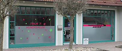 Tanja´s Hundesalon & Fahrschule Heide · Ebelsbach · Schaufenster · Glasdekorfolie & Systemtextfolie · Blickschutz