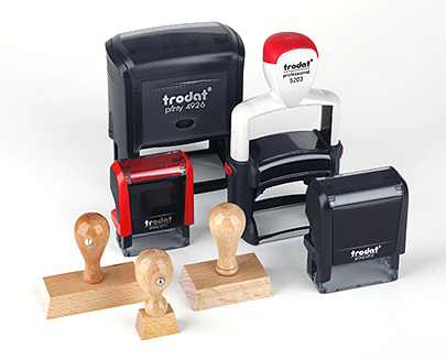 Sie benötigen einen Stempel? Wir fertigen Ihren neuen Qualitätsstempel mit ausgezeichneten „Trodat“-Gehäusen oder aus Holz individuell an. Wählen Sie dabei aus verschiedenen Größen und Farben für das Gehäuse – ganz nach Ihren Vorlieben und Anforderungen. Das Stempelkissen gibt es ebenfalls in mehreren Farben.